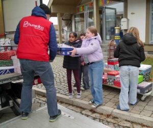 Humedica holte die „Geschenke mit Herz“ ab. 101 Päckchen, der 4. Rekord in Folge. Danke an alle Päckchenpackenden.