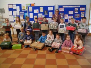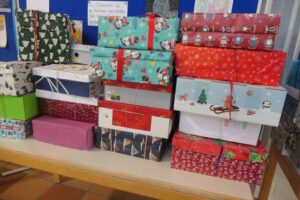 Humedica holte die „Geschenke mit Herz“ ab. 101 Päckchen, der 4. Rekord in Folge. Danke an alle Päckchenpackenden.